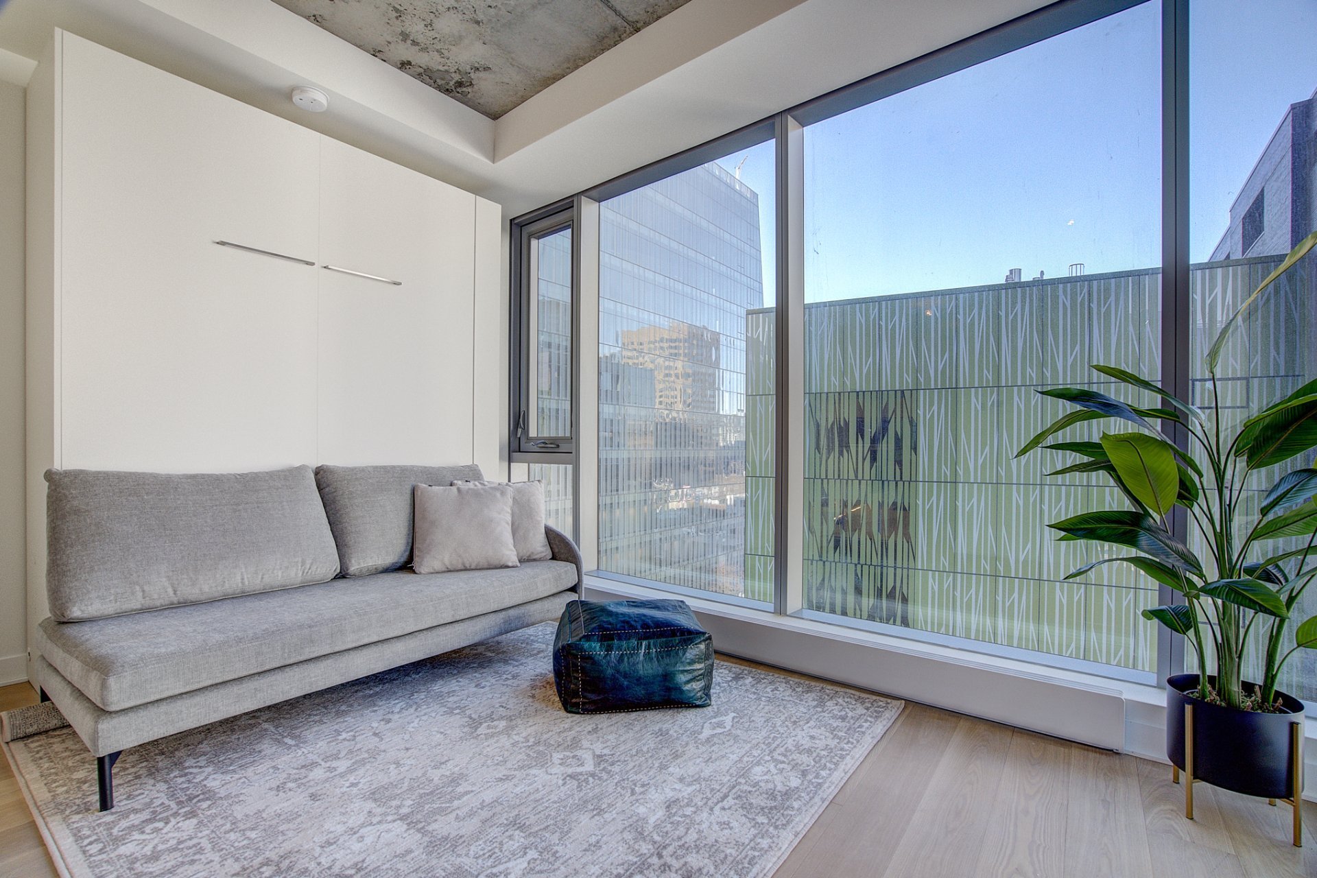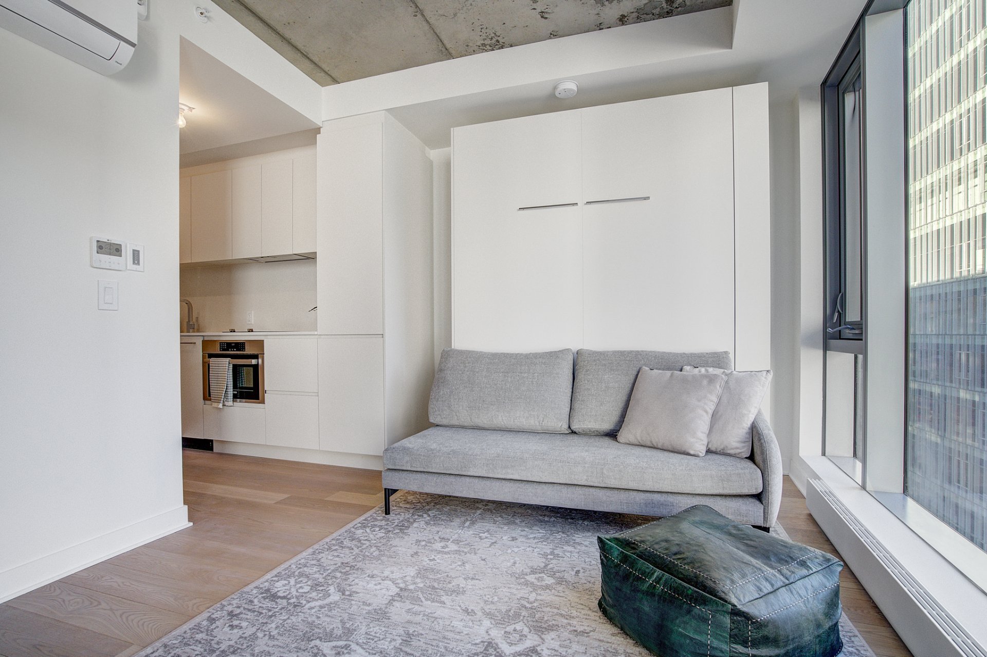 Studio neuf ENTIÈREMENT MEUBLÉ au coeur du centre-ville de Montréal, où la vie moderne rencontre le luxe urbain. Un design épuré et une abondance de luminosité. Services de classe mondiale à votre porté. Choisissez parmi deux options ; entièrement meublé pour 1495$ ou meublé + équipé pour 1595$, ce qui vous garantit une solution clé en main. Disponible à partir le 1er mars pour une location de 6 mois minimum.