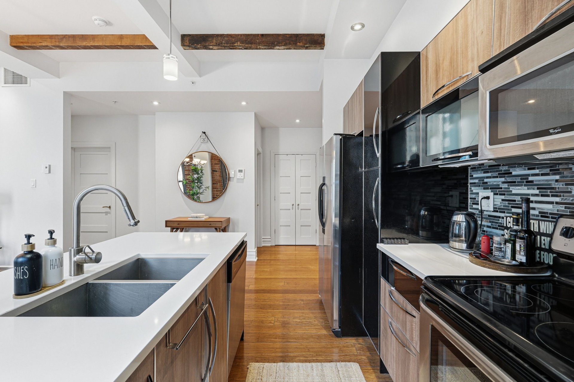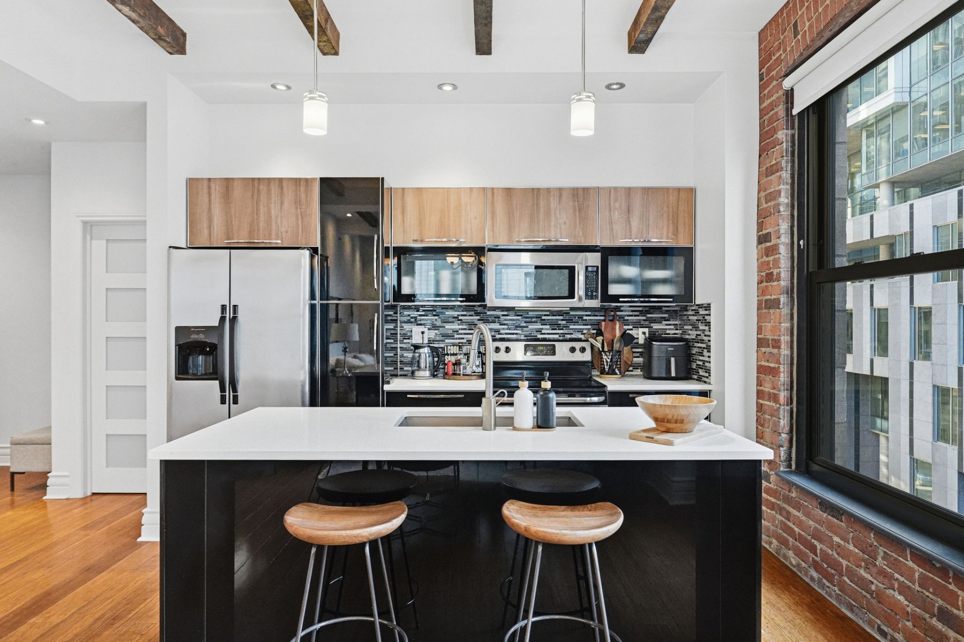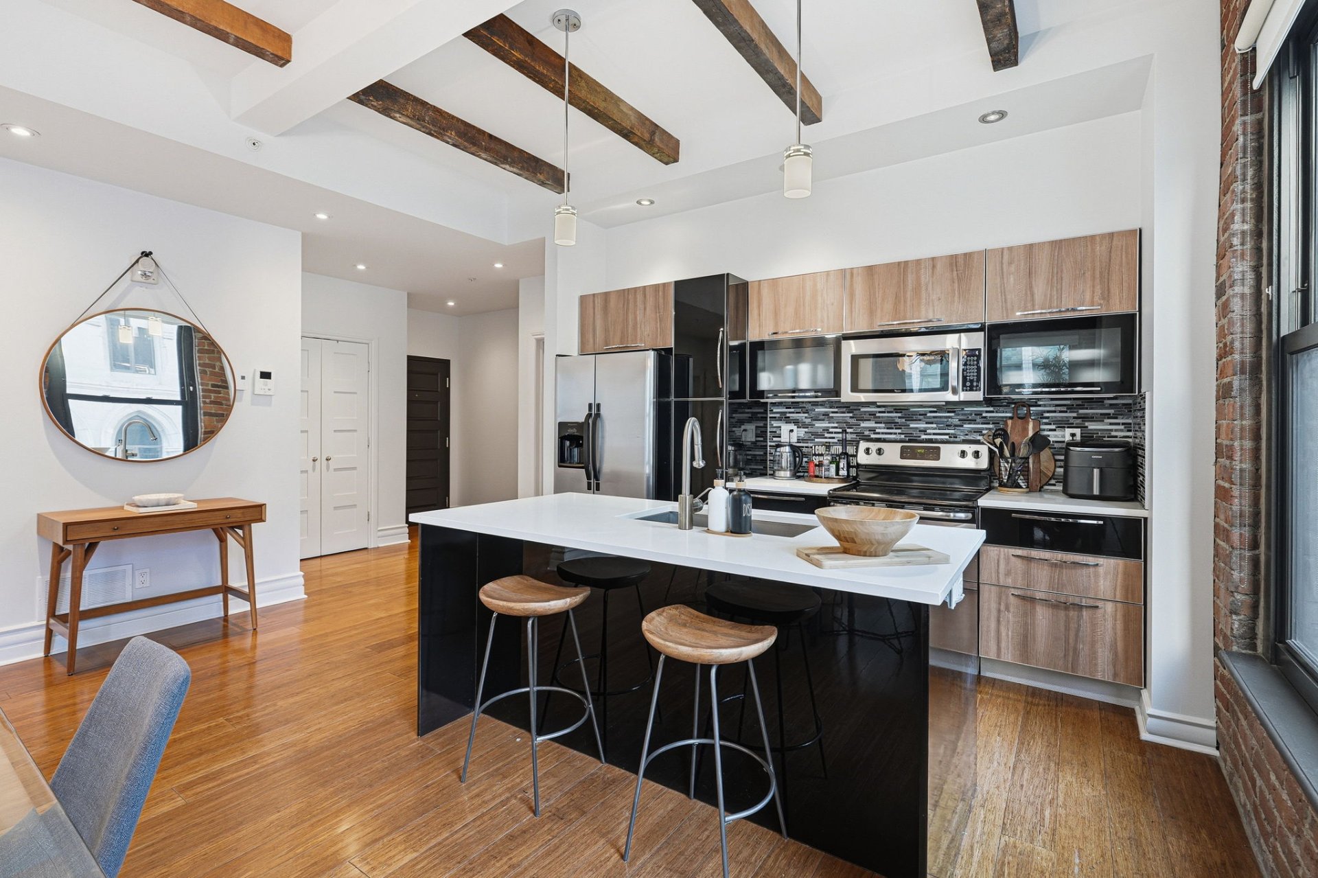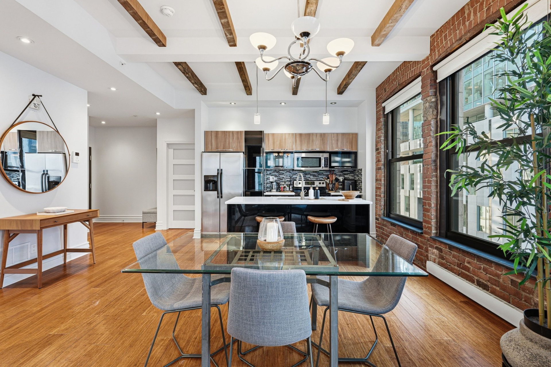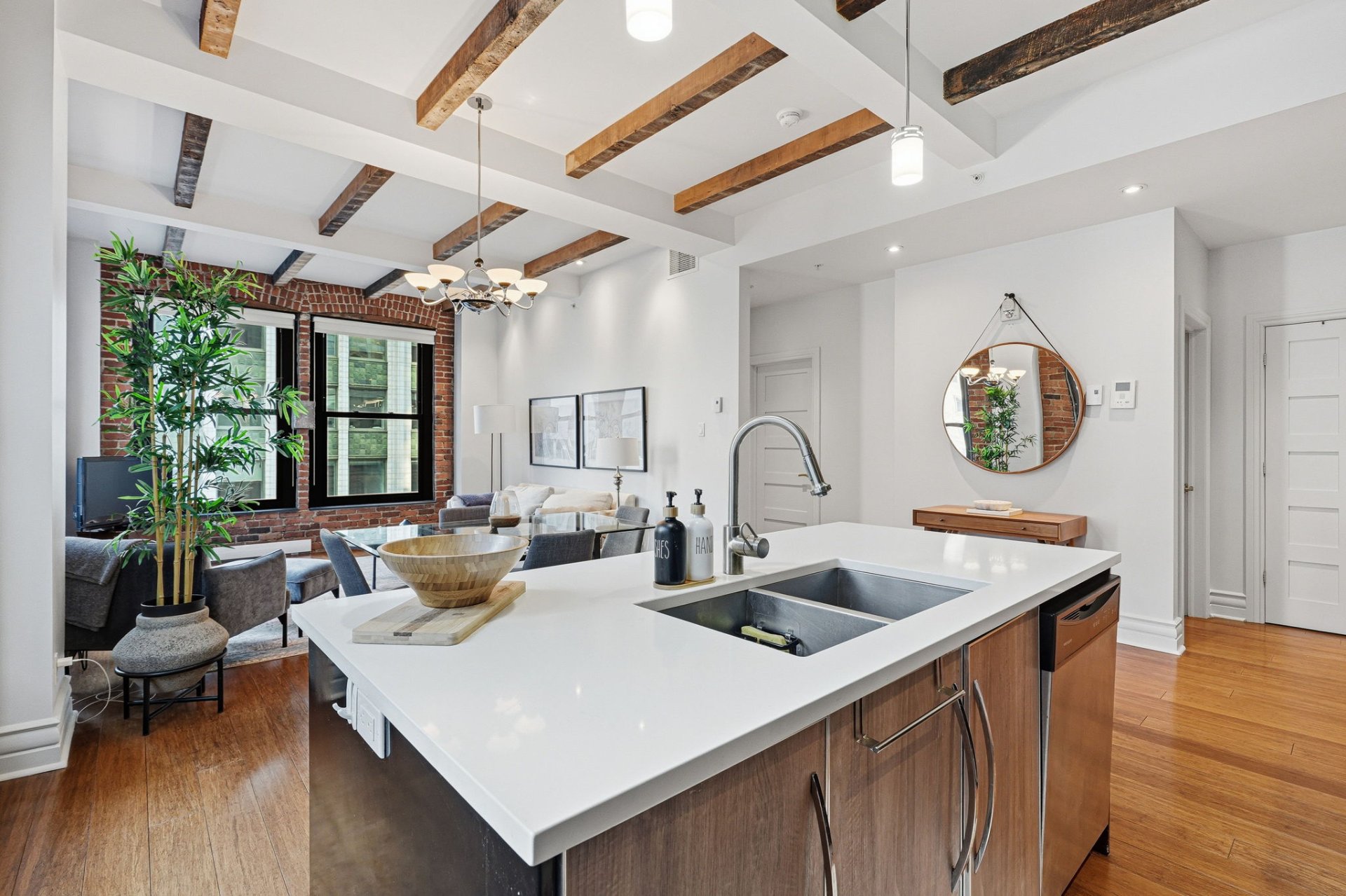 Superbe unité de coin entièrement rénovée, alliant parfaitement confort moderne et cachet intemporel du Vieux-Montréal. Avec ses plafonds hauts, ses grandes fenêtres et ses poutres et murs de briques apparents, elle profite d'une luminosité exceptionnelle et d'un caractère unique. Idéalement située à l'angle de McGill et Notre-Dame, au coeur du Vieux-Montréal, à quelques pas des restaurants, boutiques et de tous les services. Emplacement de choix, style de vie incomparable.