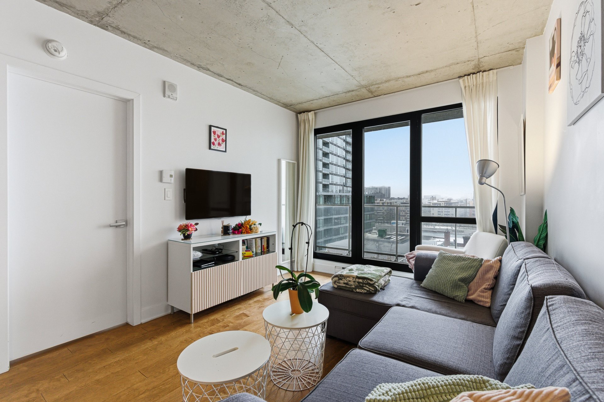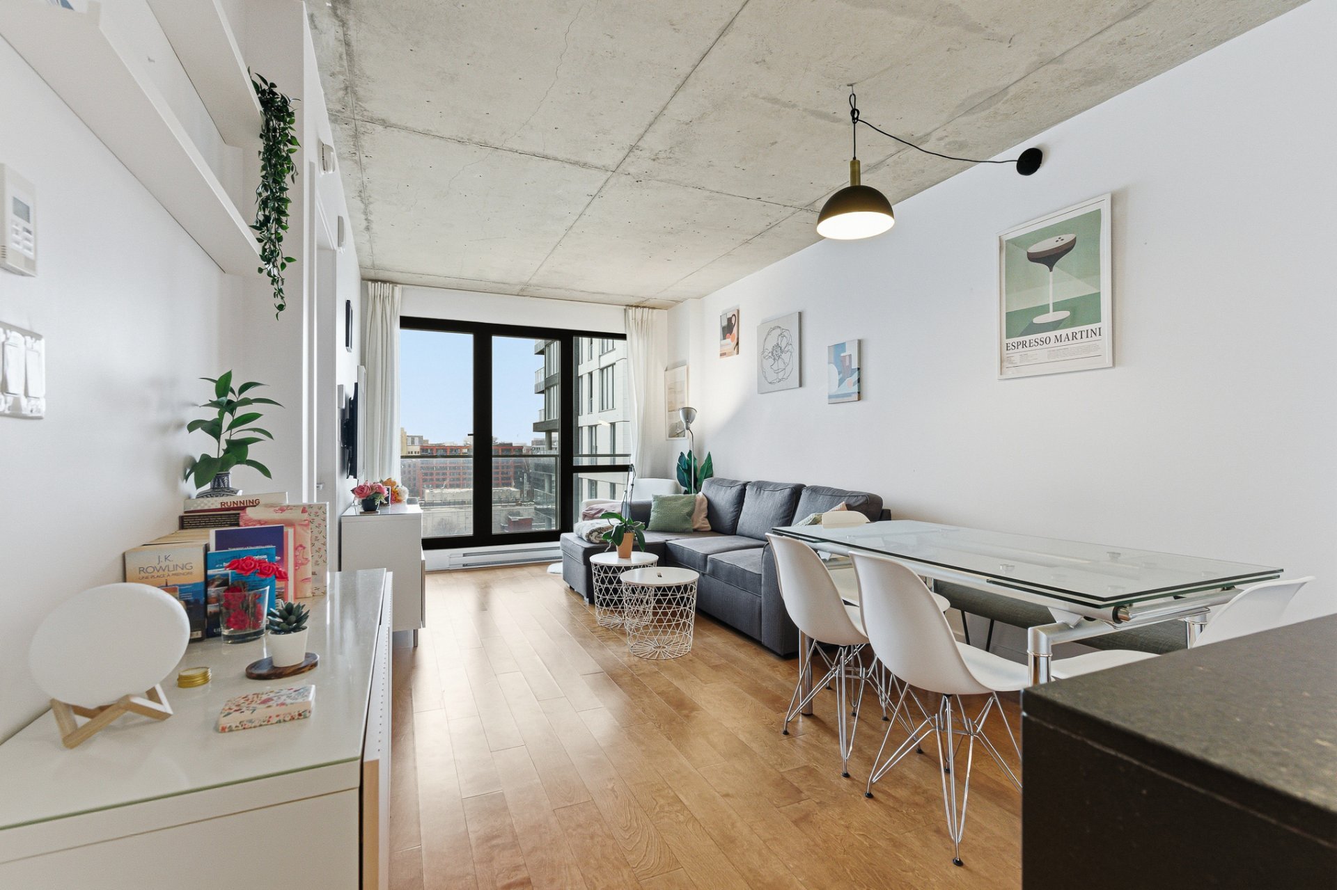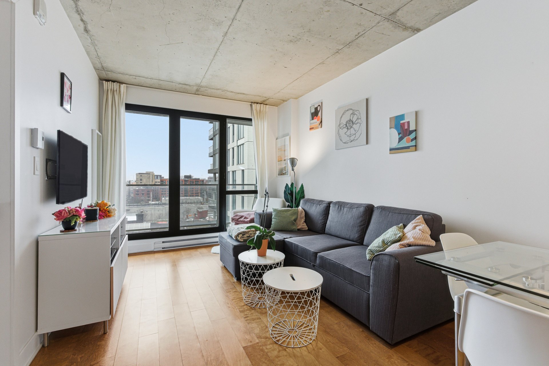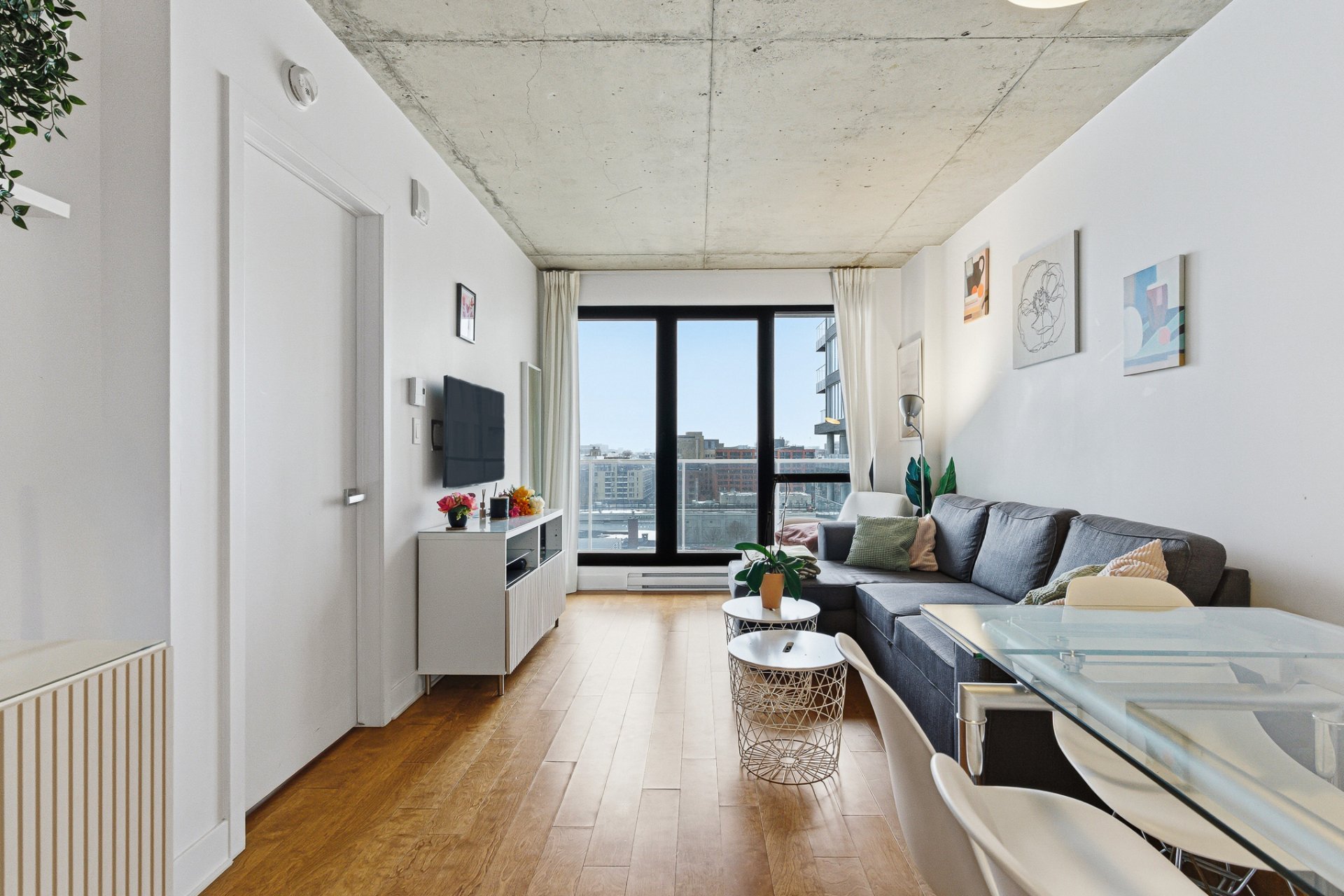 Beautiful one-bedroom condo ideally located in the sought-after 21e Arrondissement, steps from Old Montréal. This bright unit offers a very well-designed layout with ample storage, an open-concept living area with high-end finishes, a sleek modern kitchen, and floor-to-ceiling windows that fill the space with natural light. Enjoy a spacious balcony with unobstructed views and world-class amenities: indoor and outdoor pools, terraces, gym, spa, sauna, and urban chalet. Minutes from Square-Victoria metro, the future REM, IGA, pharmacy, shops, and top restaurants in Cité Multi-Média. Perfect for first time home buyers or investor.