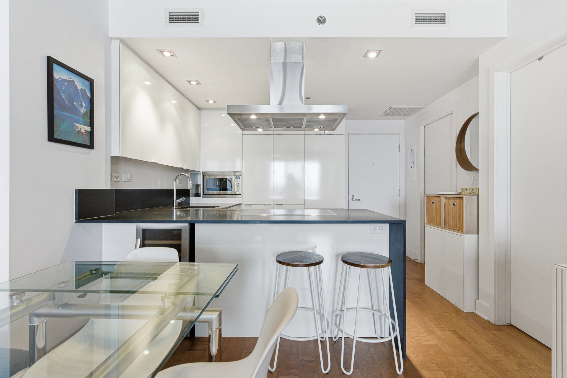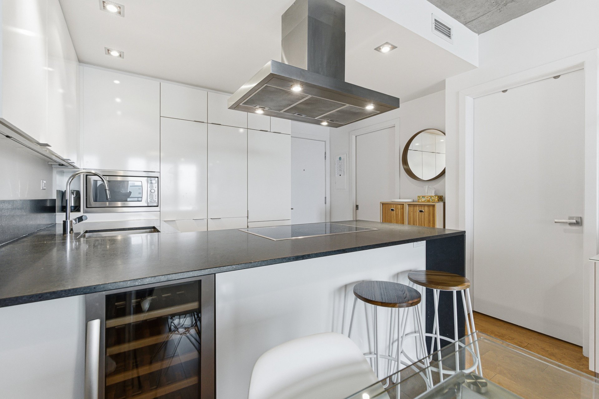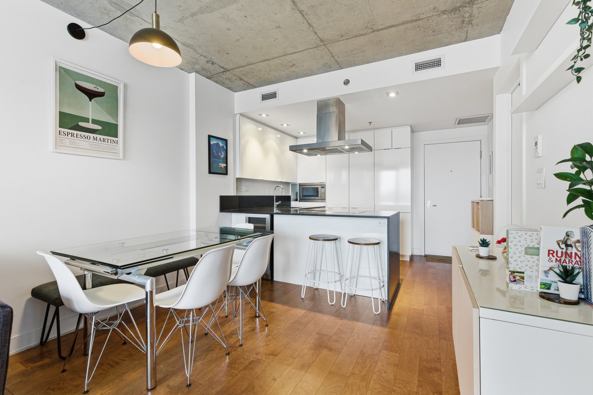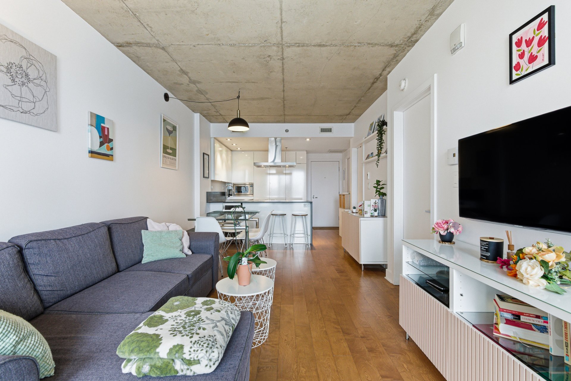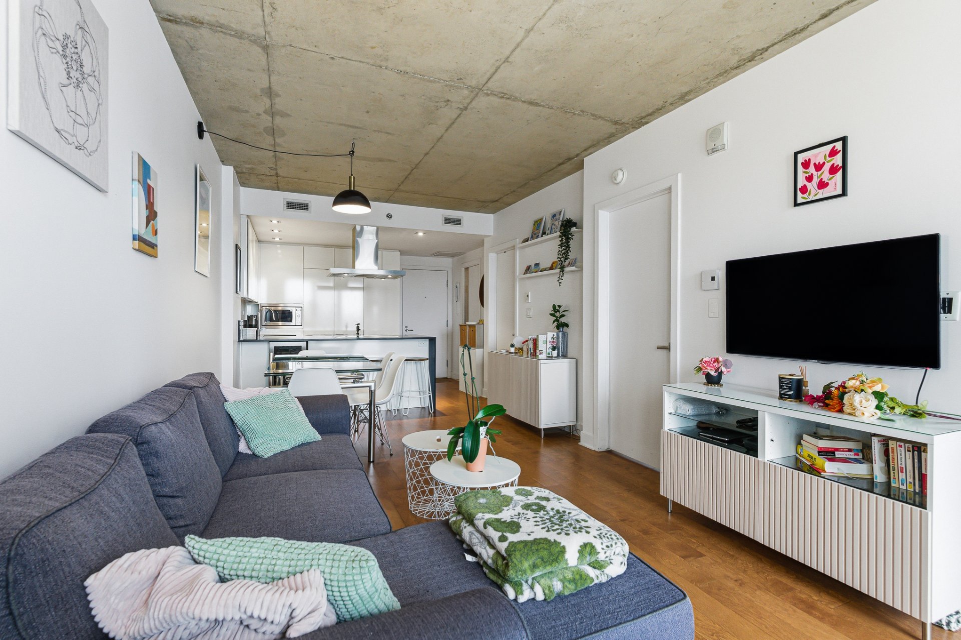 Beautiful one-bedroom condo ideally located in the sought-after 21e Arrondissement, steps from Old Montréal. This bright unit offers a very well-designed layout with ample storage, an open-concept living area with high-end finishes, a sleek modern kitchen, and floor-to-ceiling windows that fill the space with natural light. Enjoy a spacious balcony with unobstructed views and world-class amenities: indoor and outdoor pools, terraces, gym, spa, sauna, and urban chalet. Minutes from Square-Victoria metro, the future REM, IGA, pharmacy, shops, and top restaurants in Cité Multi-Média. Perfect for first time home buyers or investor.