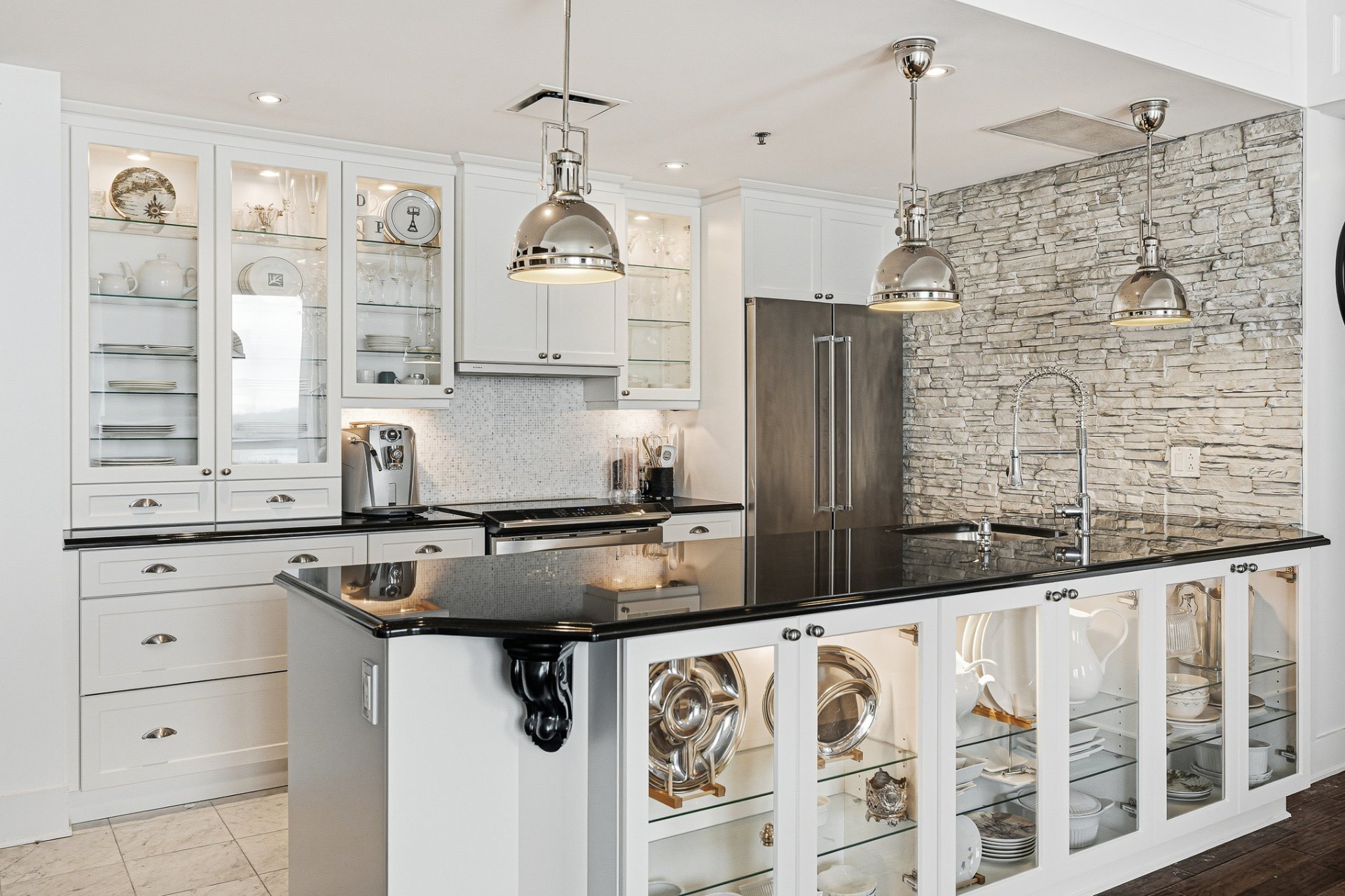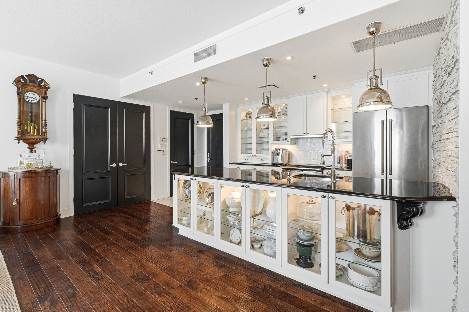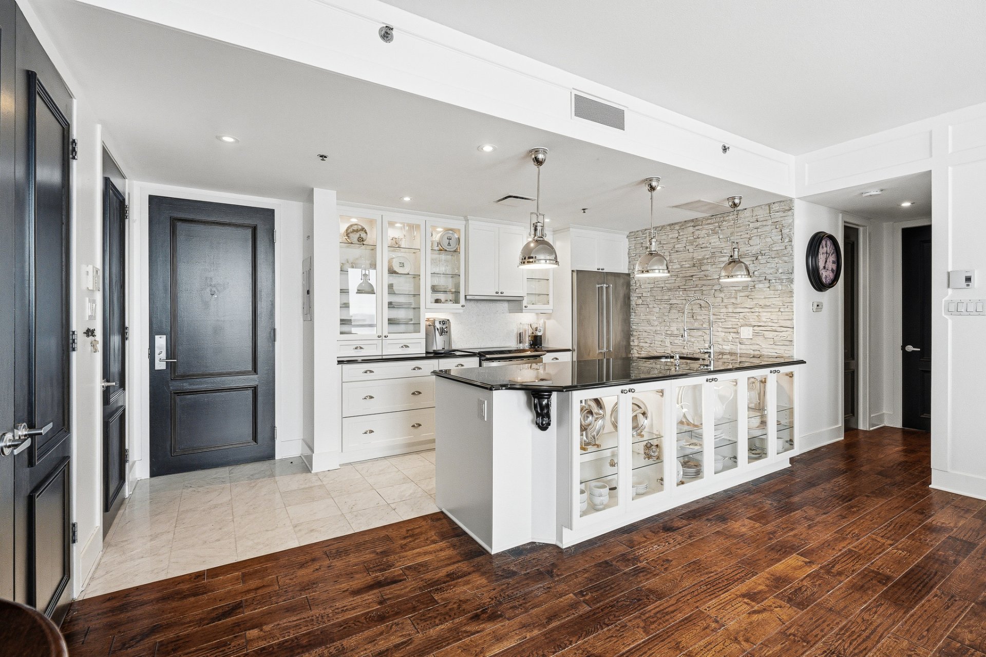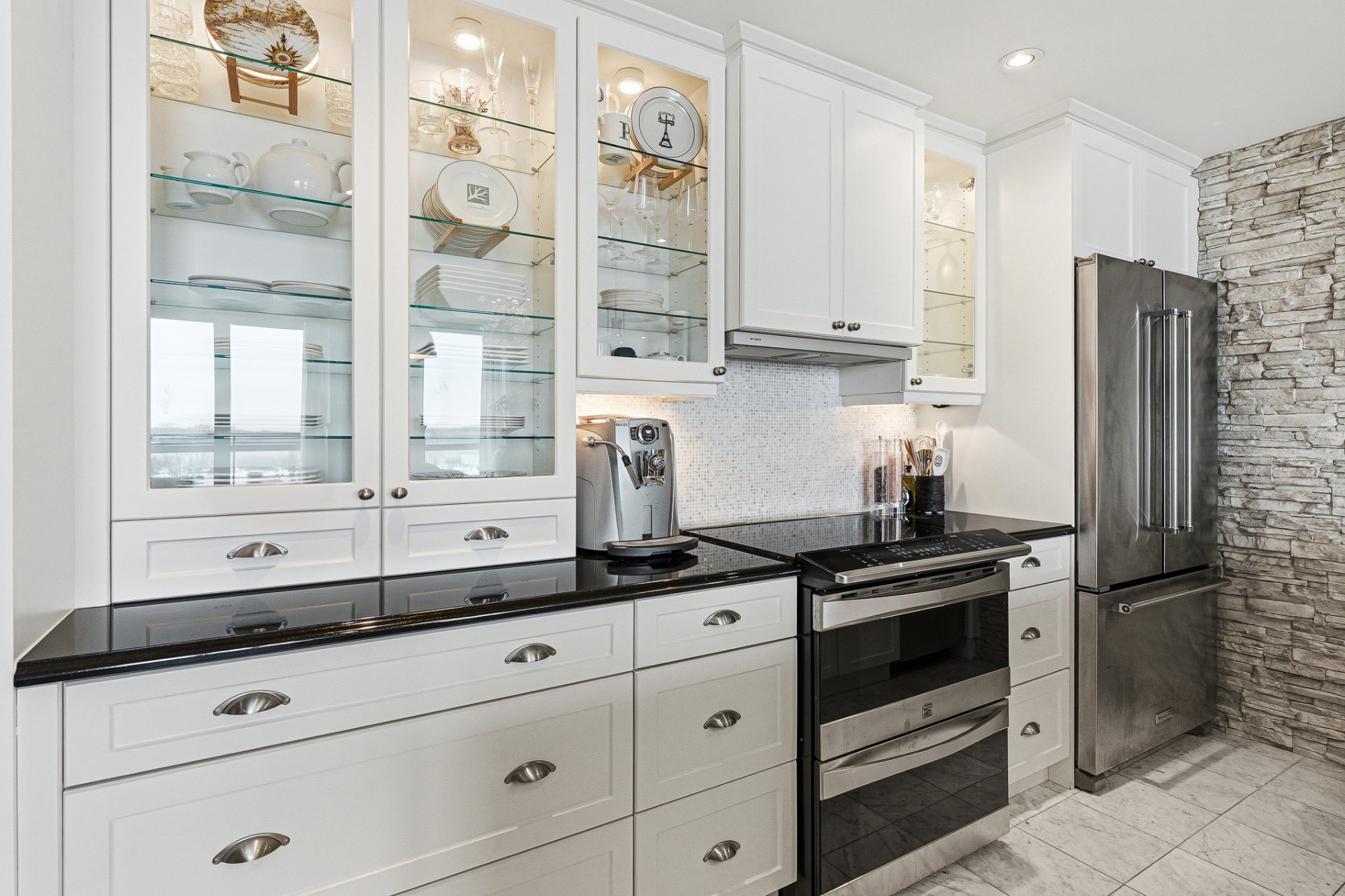 The contemporary kitchen showcases a refined